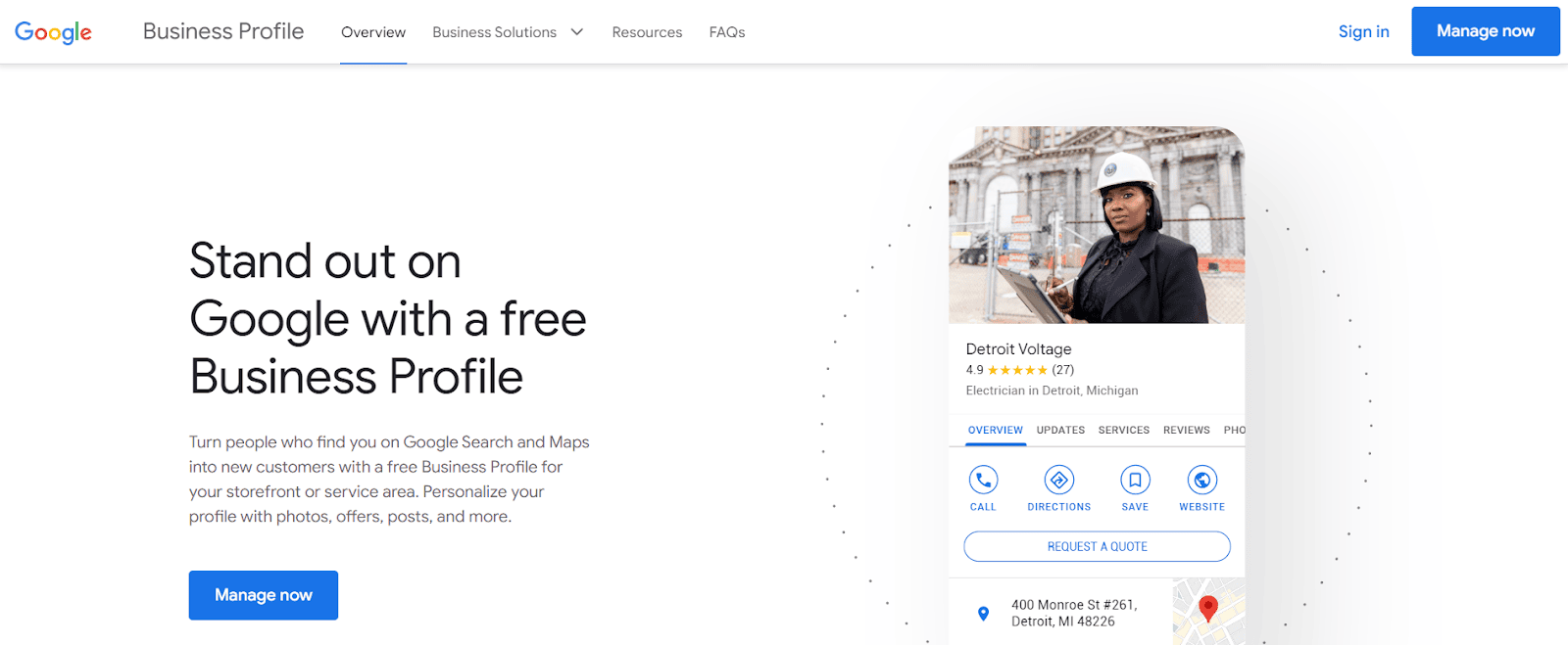 Head over to Google Business Profile and sign in with your existing Google account (or create a free one if you don't have one). Search for your business name and claim it if it already exists. If not, you'll be able to add it yourself.